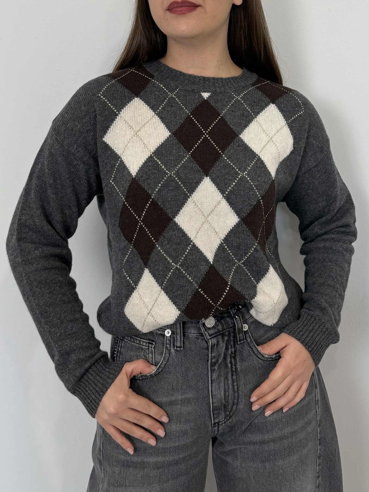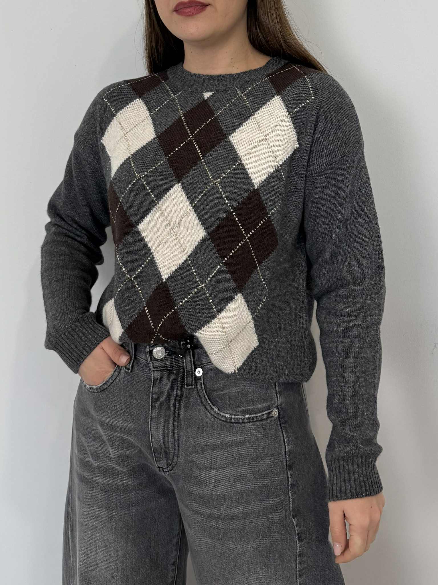 Tensione In - Maglioncino losanghe grigio/moro