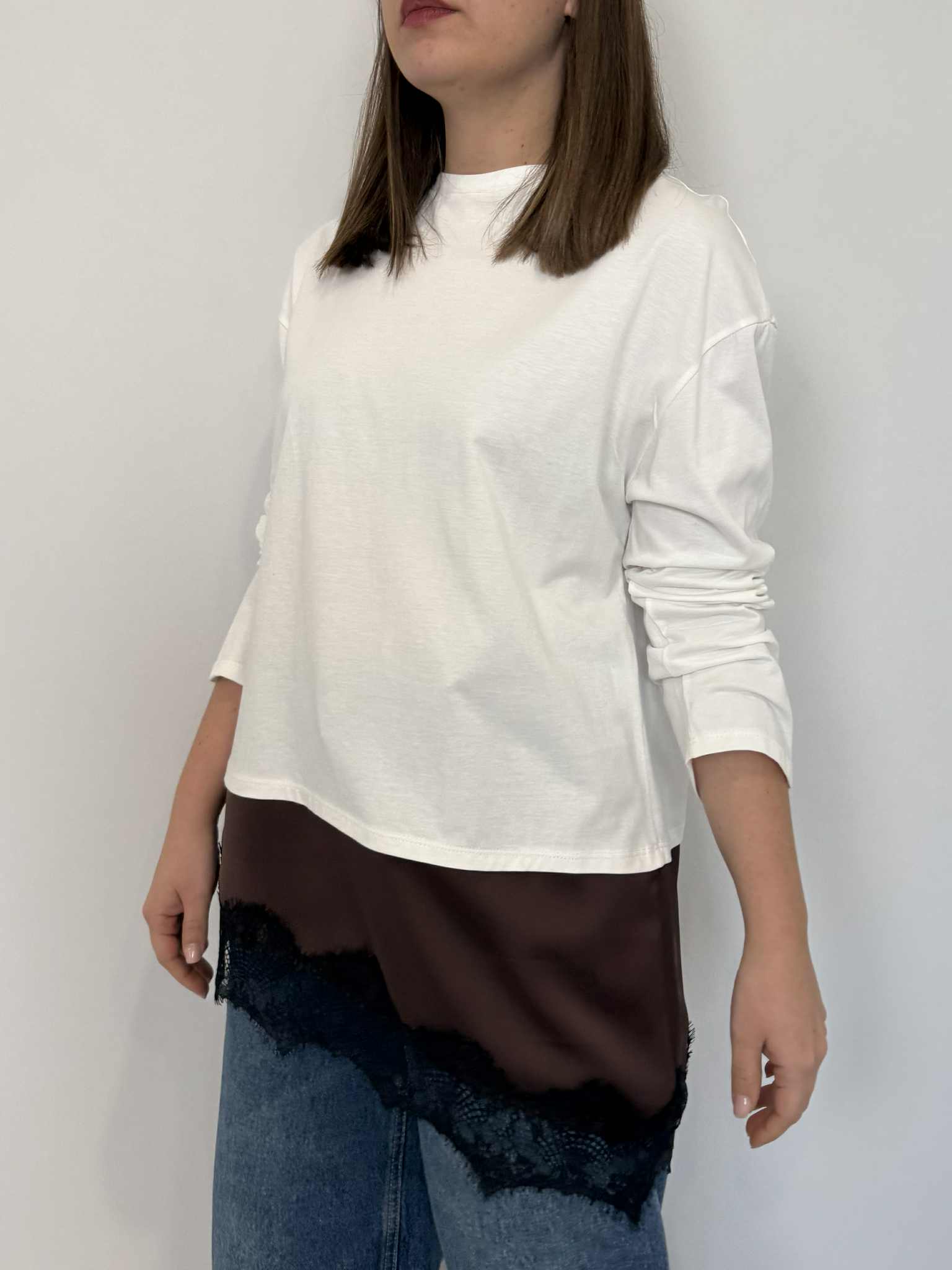 Tensione In - Maglia bianca con pizzo finale moro